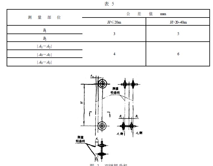雙鏈提升機上,下軸安裝要求(見圖3)應(yīng)符合表5 的規(guī)定;
