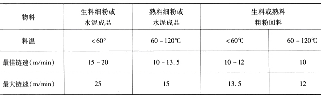 輸送不同磨琢性物料時所推薦的鏈速